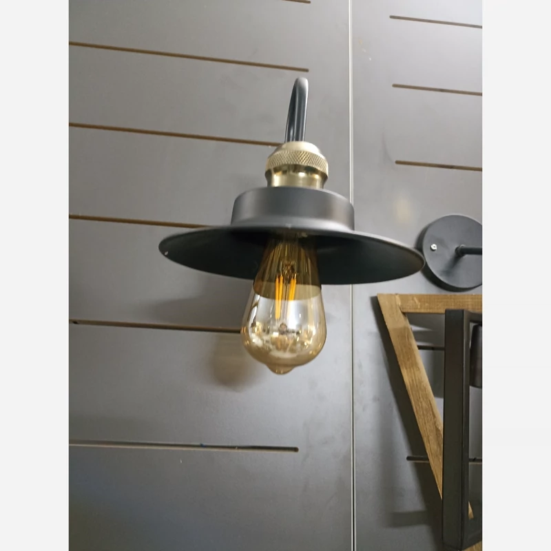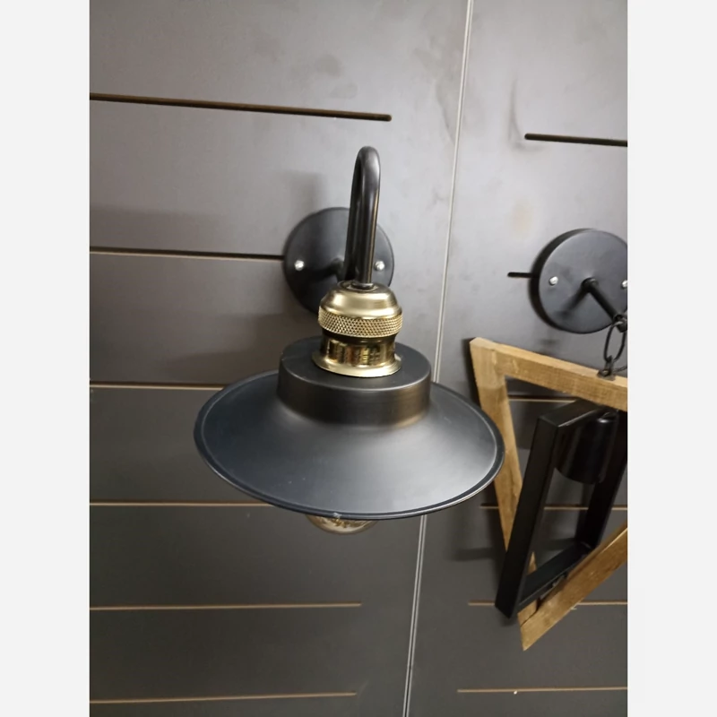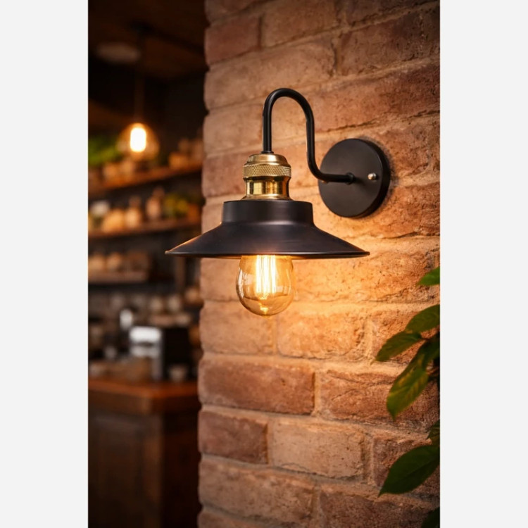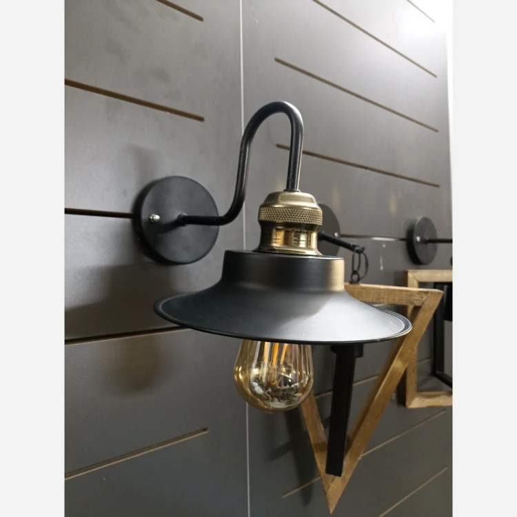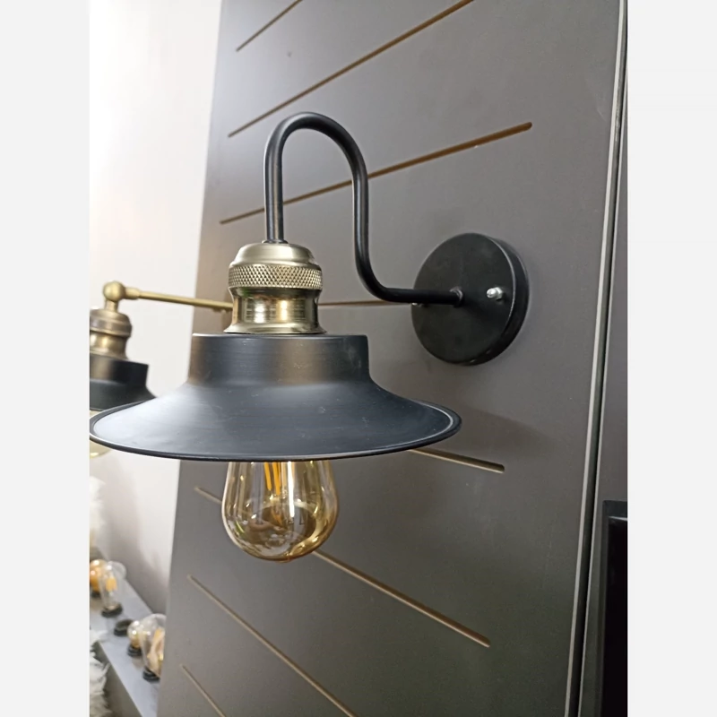 چراغ دیواری، کافه ایی، فلزی مشکی با سرپیچ ابکاری برنز،کلاه دار